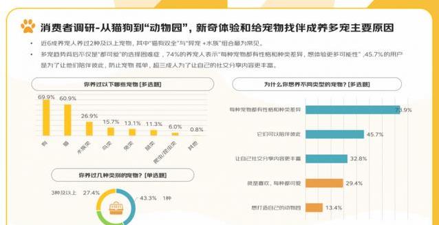 多宠家庭也越来越常见。小姜的朋友小张家里养了两只猫和一只狗,活脱脱一个“动物园”。报告里说,73.9%的人养多只宠物是因为每只宠物的性格都不一样,互动起来更有趣。还有人觉得,宠物多了能互相陪伴,自己不在家也不用担心它们孤单。小张说,他家猫狗有时候还会“组队”捣乱,搞得他哭笑不得,但也觉得家里更热闹了。